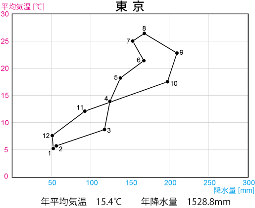 さて本題に入りましょう。東京の気候区分はいったい何なのか?最初に示したチャート図に戻ってみましょう。これに沿って東京を分類してみましょう。