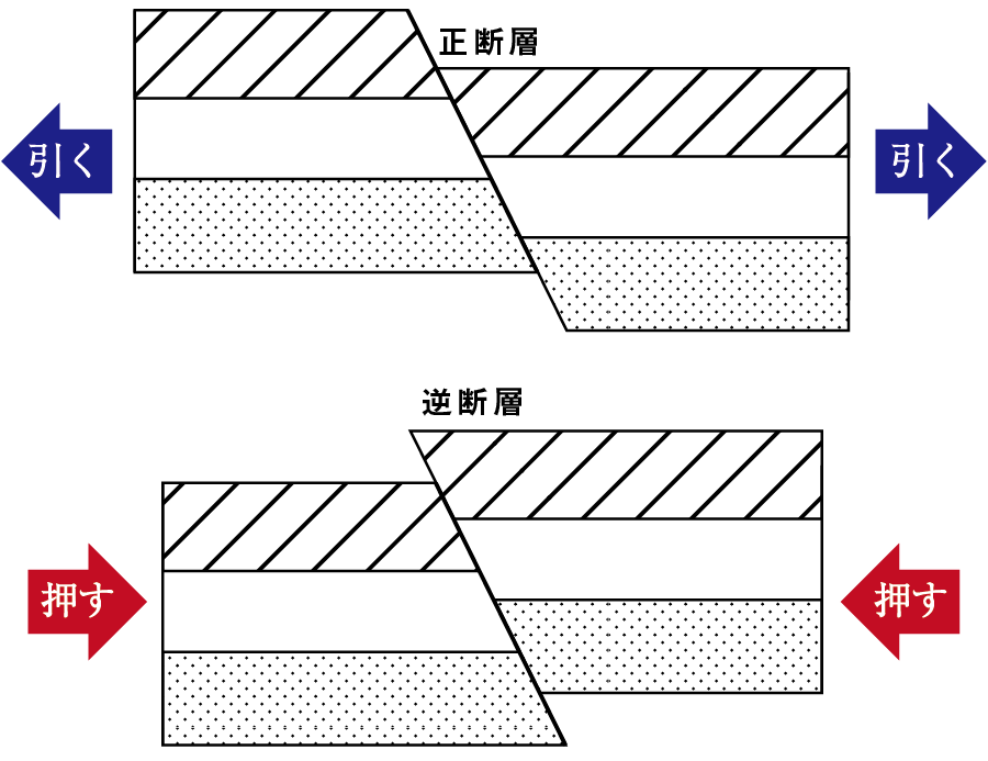 押す力が加わった場合は逆断層